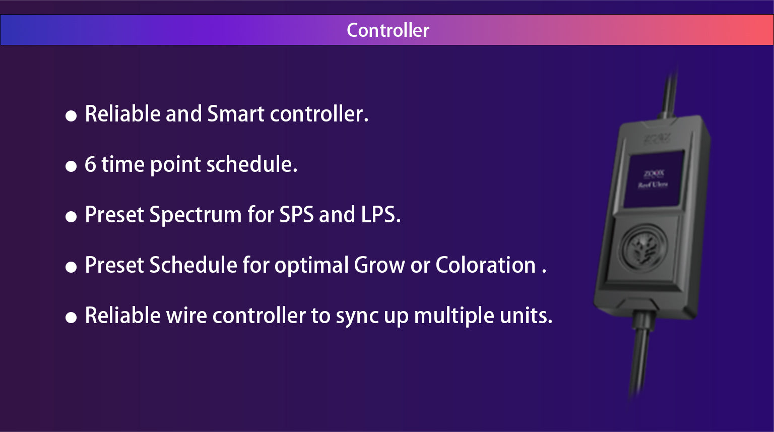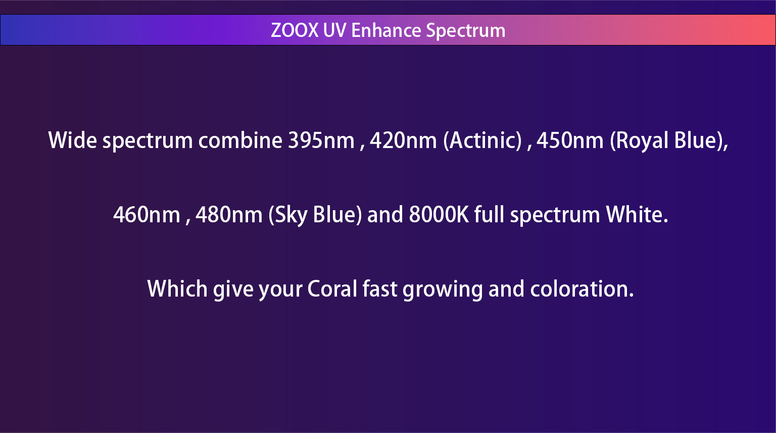 Enhanced Spectrum - Ultra-wide UV and Actinic spectrum for vibrant coral coloration.